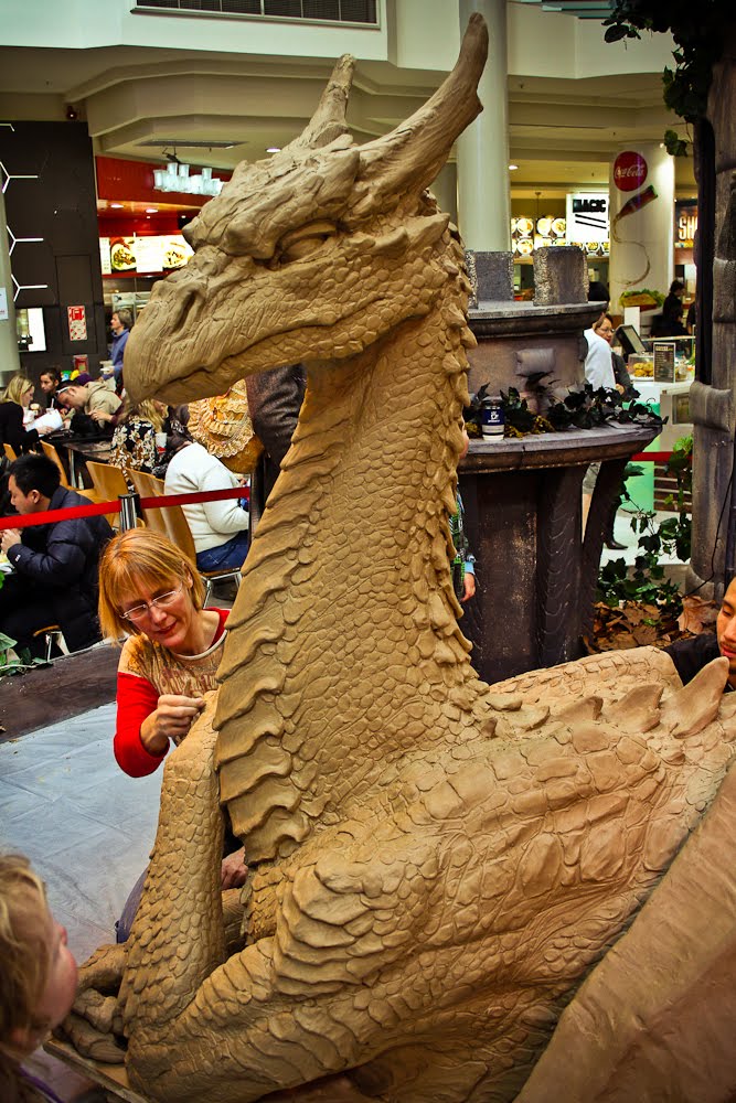 At Manukau shopping mall in Auckland, Weta Workshop had a sculpture exhibit, and legendary sculptor Kim Graham was sculpting a Dragon. It was a privilege to do bit of sculpting on dragon's scale details for Kim.